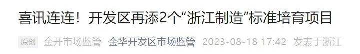 浙江省金華開發(fā)區(qū)市場監(jiān)管發(fā)布了2023年第三批的“浙江制造”標(biāo)準(zhǔn)培育計劃,我司的《車載用石英晶體諧振器》項目成功入選。這一榮譽使得TROQ創(chuàng)捷電子成為浙江制造業(yè)先進性的區(qū)域品牌之一,標(biāo)志著我們的產(chǎn)品將帶有《浙江制造》的形象標(biāo)識。