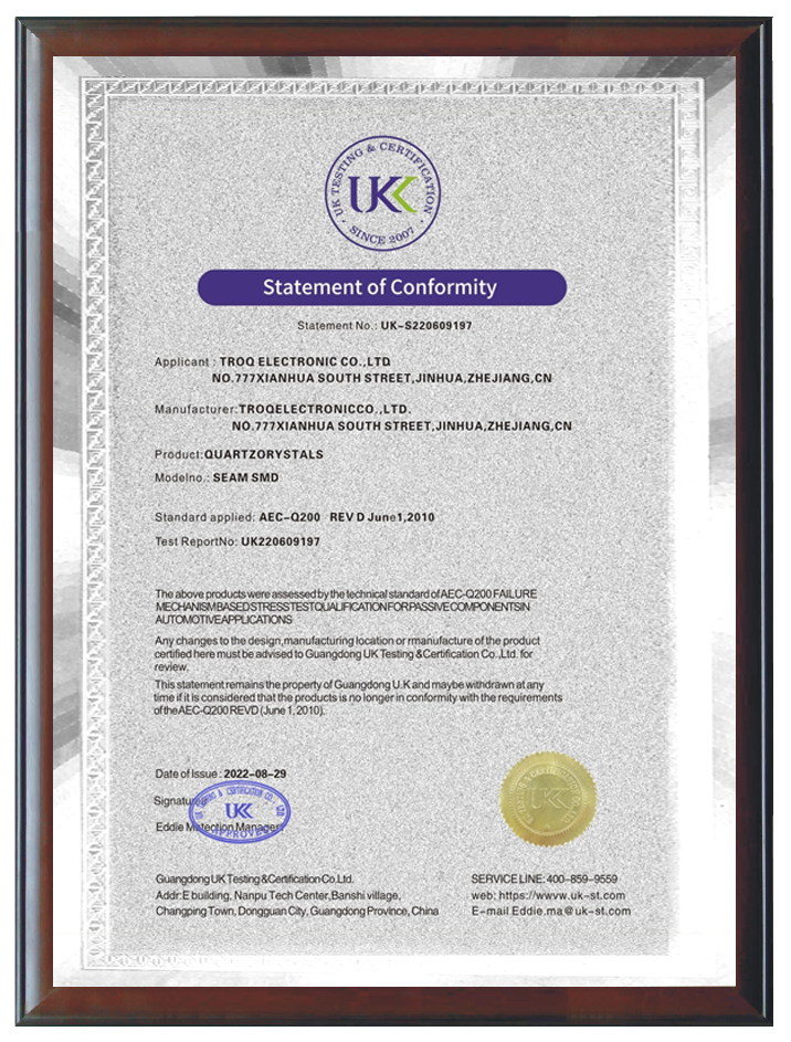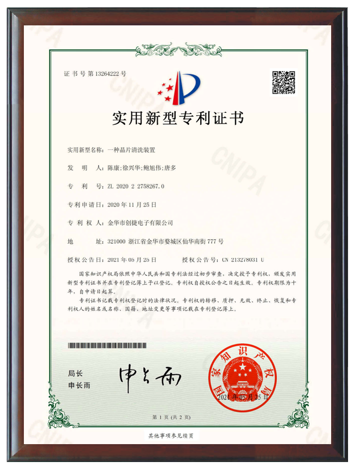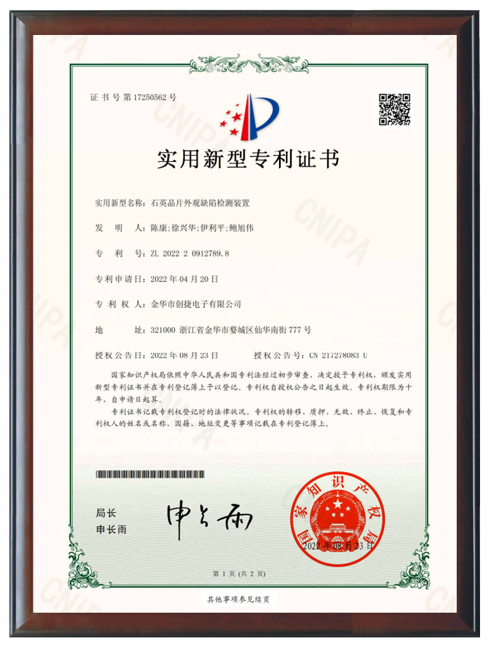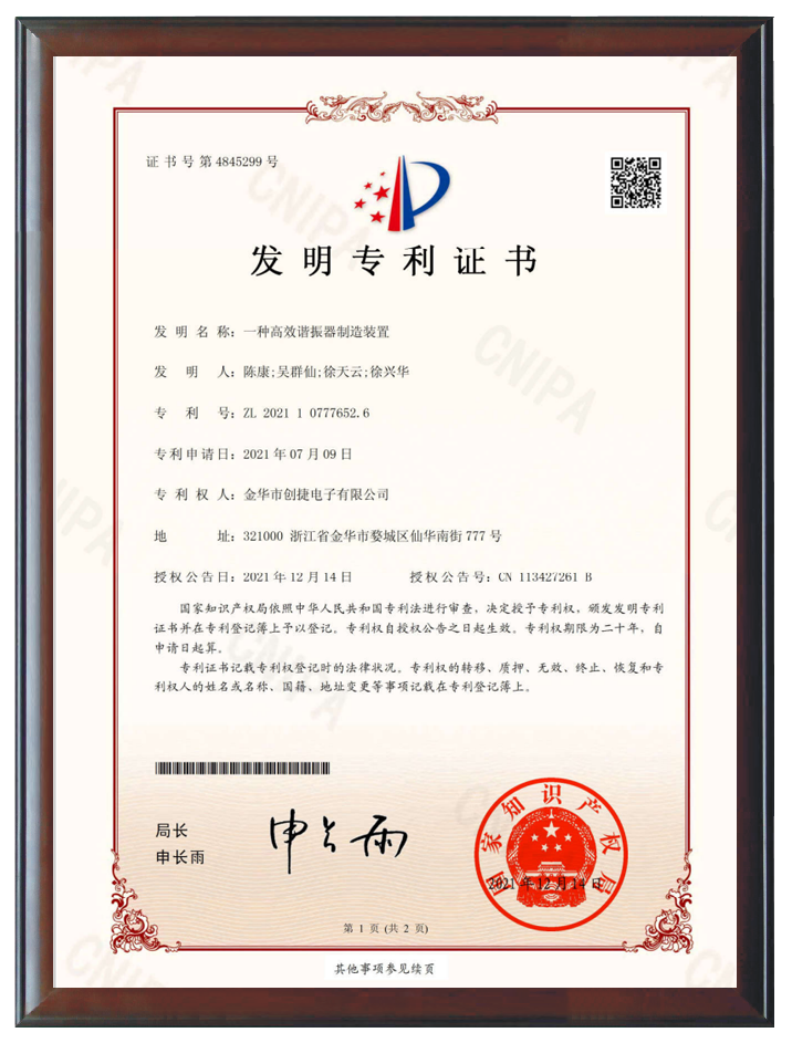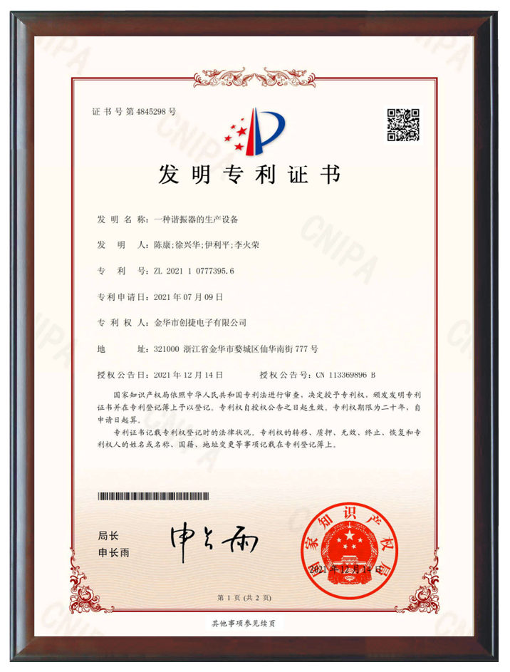 在技術(shù)創(chuàng)新方面,擁有42項國內(nèi)外專利,包括8項發(fā)明專利和34項實用新型專利。產(chǎn)品獲得了美國高通公司(QUALCOMM)的手機(jī)芯片和穿戴設(shè)備芯片組的平臺認(rèn)證,這不僅是對創(chuàng)捷電子技術(shù)創(chuàng)新和產(chǎn)品質(zhì)量的國際認(rèn)可,也是對公司在全球晶體行業(yè)舞臺上地位的肯定。