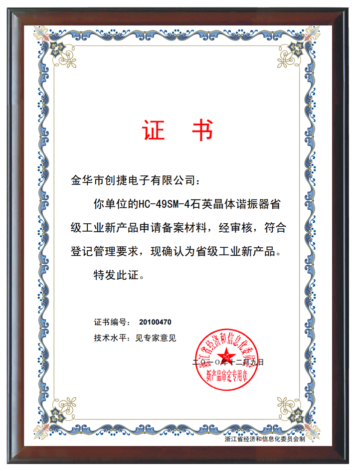 JA504微型石英晶體諧振器、HC-49SM-4認(rèn)定為工業(yè)新產(chǎn)品